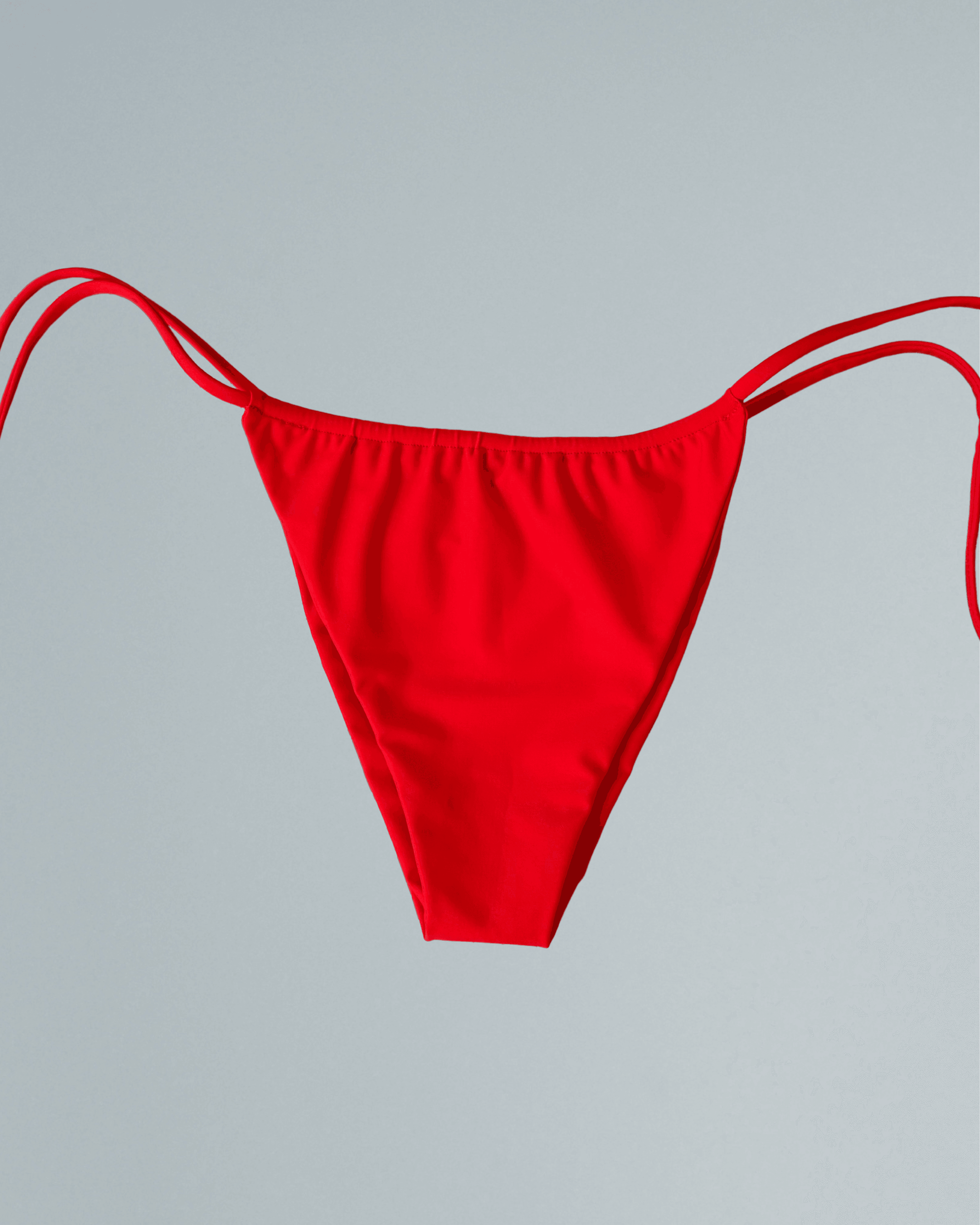 This itsy bitsy bikini bottom has adjustable string ties, is high on the hips, and super flattering. The perfect bottoms for tanning! Pairs well with the Lola top, Elsa top or the Basic top. Coverage: Skimpy.
